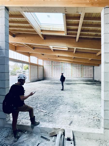 Les procédés constructifs ont été pensés pour laisser une place importante aux matériaux biosourcés. Le bois est omniprésent en structure comme en habillage. La production locale est valorisée telle que l’utilisation d’isolants thermiques et acoustiques en fibres végétales produits à Sainte-Gemme-la-Plaine.
